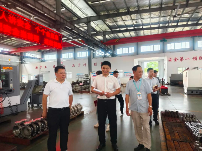 調研組一行實地查看了企業的生產車間、廠房,詳細了解了企業發展形勢,并聽取了江南泵閥董事長吳同茂關于江南泵閥高技能人才需求、參與校企合作等情況的介紹。